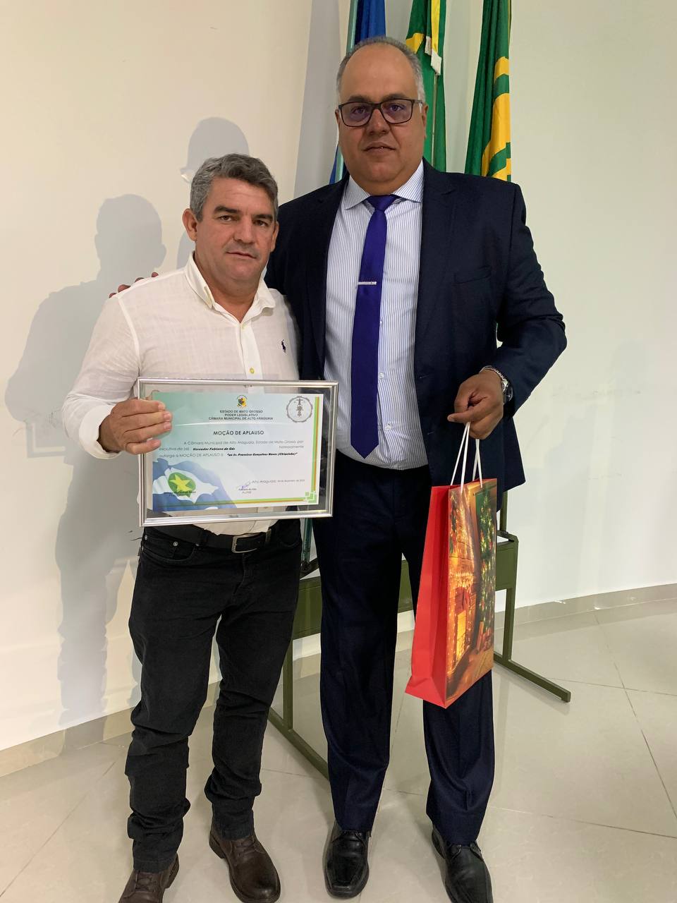 Vereador Fabiano do Gás, entrega Moção de Aplausos ao prefeito Chiquinho da cidade de Araguainha-MT.