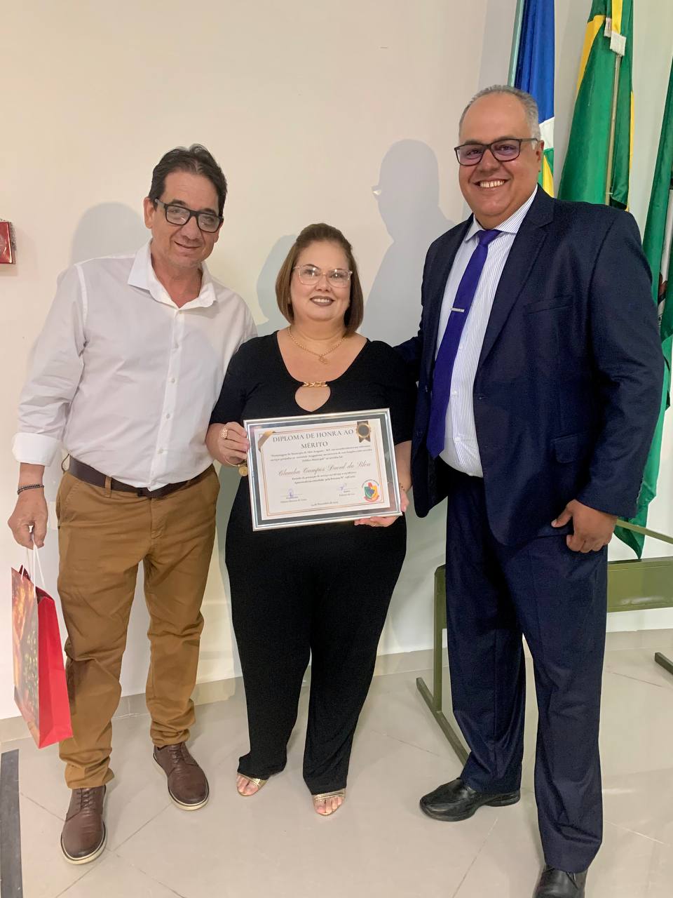 Diploma de Honra ao Mérito a servidora aposentada profª Claudia Campos David da Silva.